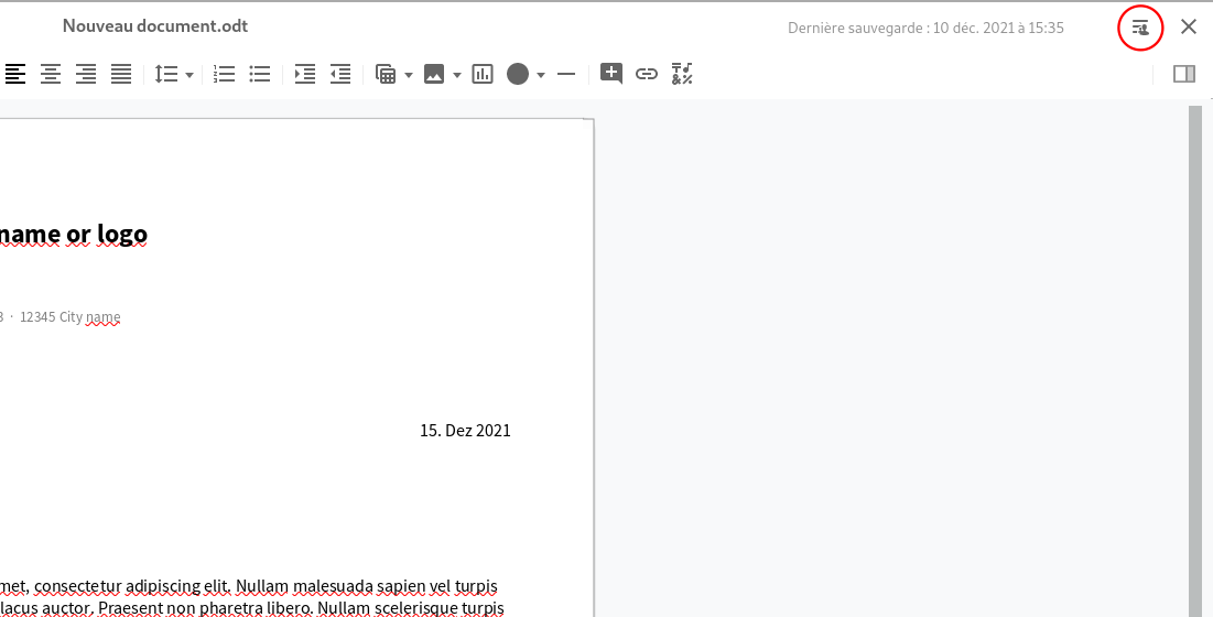 2. Ouvrez la barre latérale en cliquant sur le menu en haut à droite de l'interface d'édition du document.