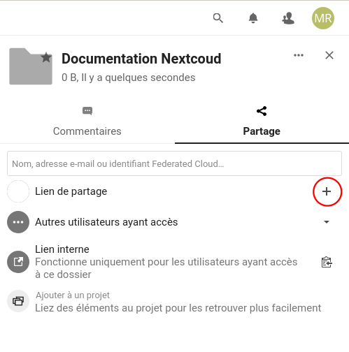 Pour rendre un contenu public (accessible sans compte sur votre instance Nextcloud)** :