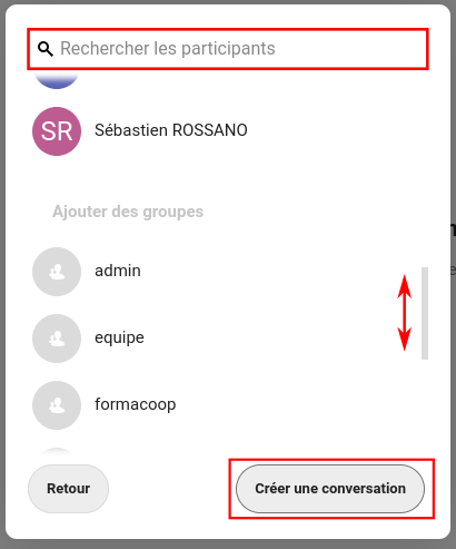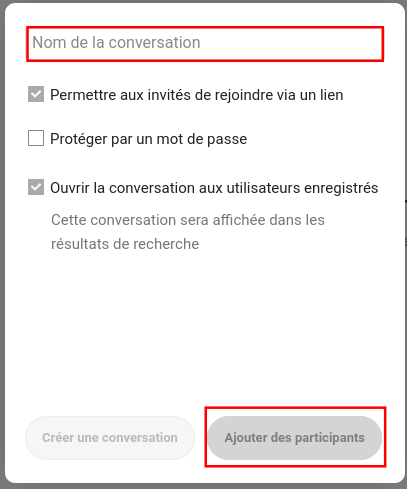 ℹ️ Pour annuler la création d'une conversation, cliquez en dehors de la boîte de dialogue.