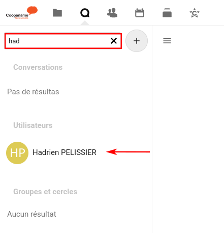 Cherchez le nom de la personne à qui vous voulez parler dans le champ de recherche à gauche de la page et cliquez dessus.