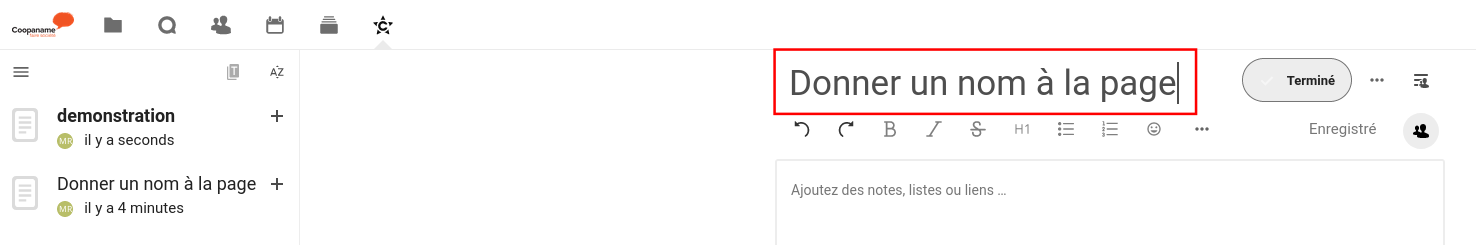 4. Quand vous avez terminé l'édition de la page, cliquez sur le bouton "Terminé" à droite du titre.