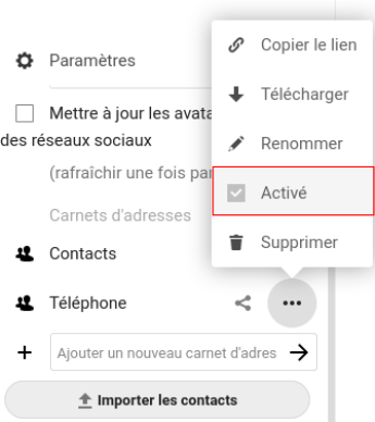 Vous pouvez choisir de désactiver l'affichage d'un carnet d'adresse dans les paramètres.