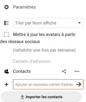 ℹ️ L'import n'est possible qu'avec des fichiers Virtual Contact File (VCF/Vcard) en version 3.0 ou 4.0.
