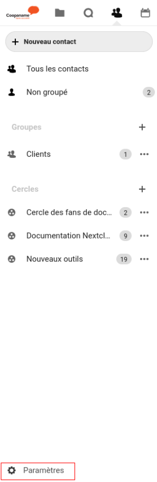 Cliquez sur "Nouveau contact" en haut de la liste des contacts.