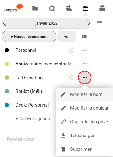 • Copier le lien privé : copier le lien de l'agenda pour les personnes y ayant accès