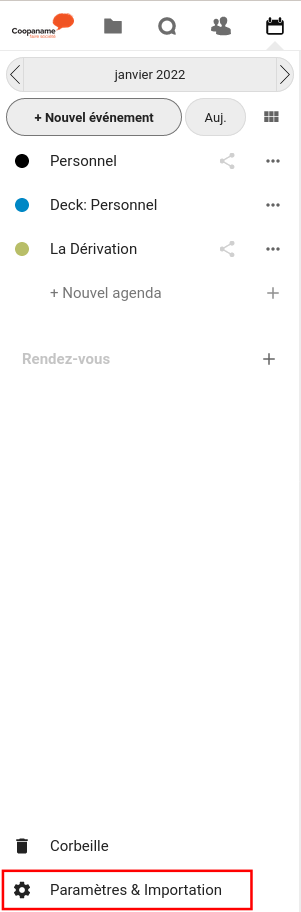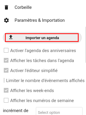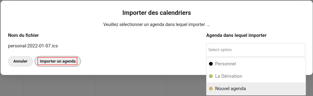 Vous pouvez importer un agenda et ses évènements depuis un autre logiciel :